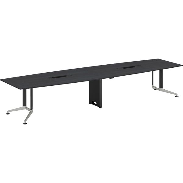 【設置込】プラス ロンナ 会議テーブル T字脚アジャスター ボート形 配線口付 幅1800×奥行900mm ミディアムウッド/ブラック 1台(直送品) |