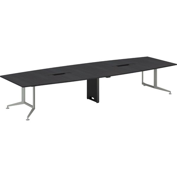 【設置込】プラス ロンナ 会議テーブル T字脚アジャスター ボート形 配線口付 幅1800×奥行900mm ミディアムウッド/ブラック 1台(直送品) |