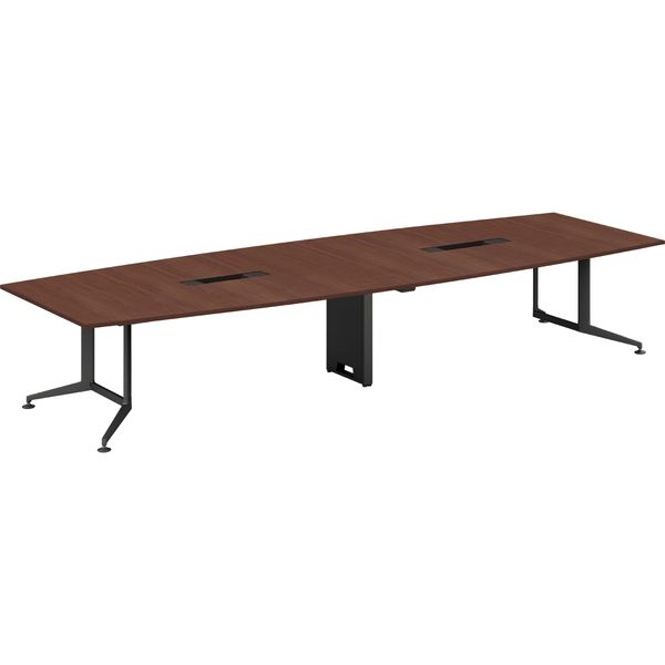 【設置込】プラス ロンナ 会議テーブル T字脚アジャスター ボート形 配線口付 幅1800×奥行900mm ミディアムウッド/ブラック 1台(直送品)