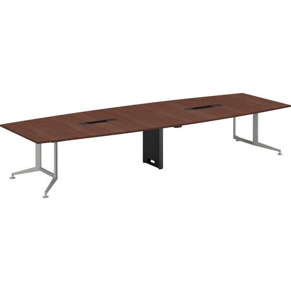 【設置込】プラス ロンナ 会議テーブル T字脚アジャスター ボート形 配線口付 幅1800×奥行900mm ミディアムウッド/ブラック 1台(直送品) |
