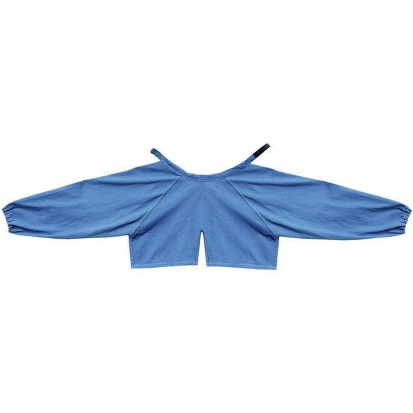 ・燃え広がりにくい難燃加工生地・腕を通して着る割烹前掛けタイプ。ずれにくく首などに負担がかかりにくいです