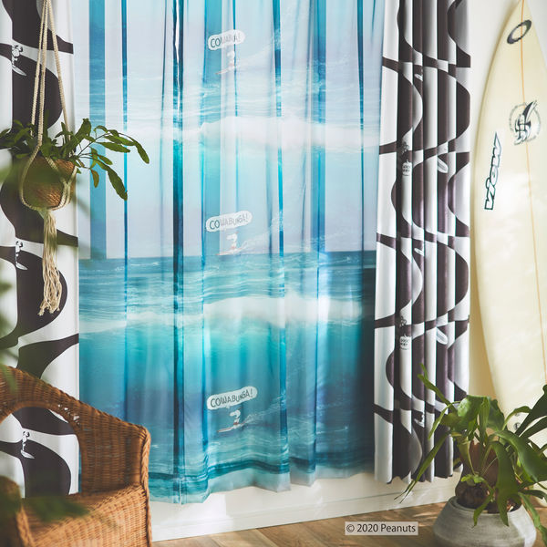 スミノエ PEANUTS セミオーダー レースカーテン カワバンガ!ボイル 2000×890mm ブルー 1セット(2枚入)(直送品)