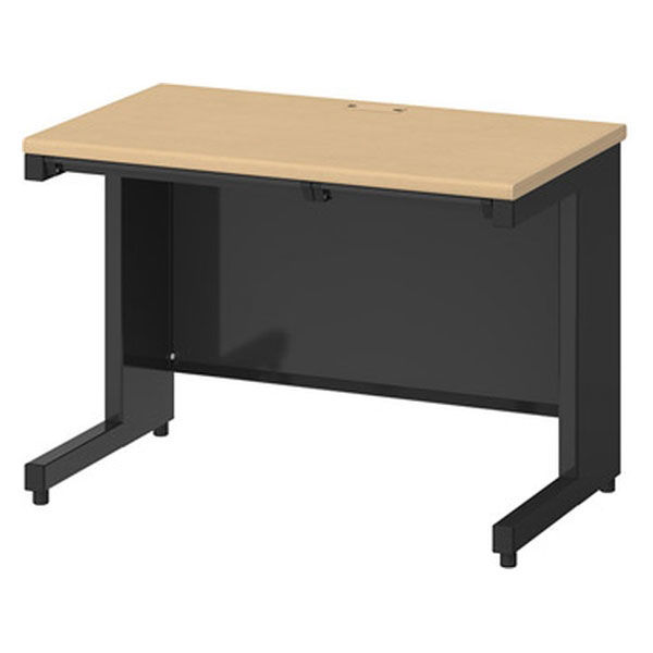 プラス フラットラインデスク 平机 引き出し付き 幅1000×奥行600×高さ700mm 天板:メープル/脚:ダークエルグレー 1台(取寄品)