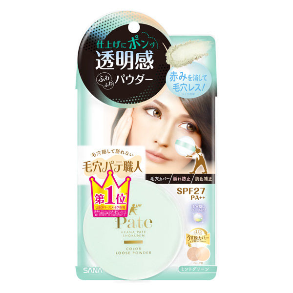 | 商品の特徴 | ひと塗りで透明感のあるさらふわ肌に。1日中毛穴隠して崩れない、カラーコントロールパウダー。赤み・ニキビ跡が気になる方向けのミントグリーン。SPF27 PA++。 | ||