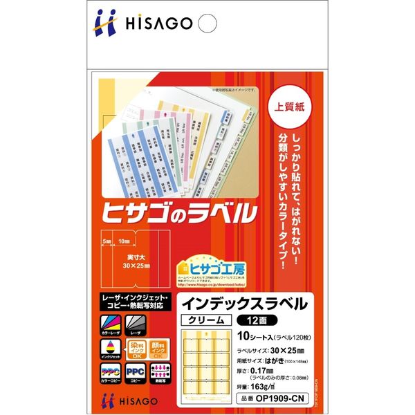 ヒサゴ インデックスラベル 12面 クリーム OP1909-CN 1セット(5パック)