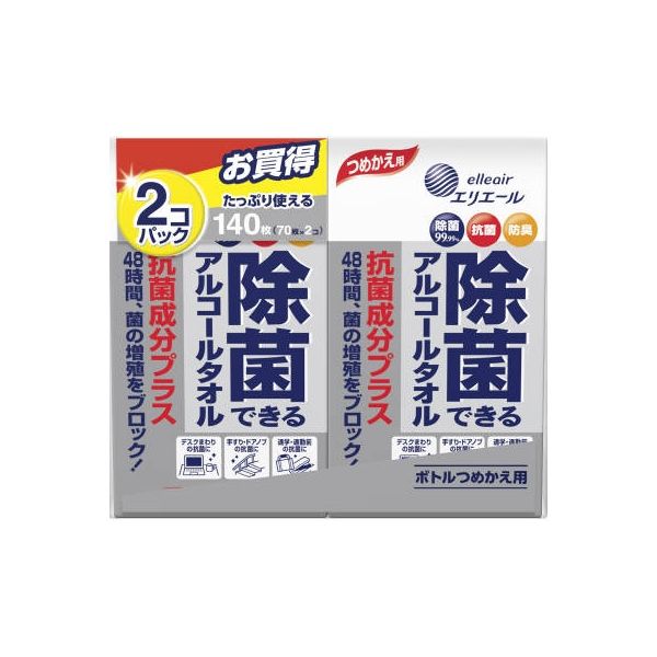 本商品:大王製紙 エリエール除菌できるアルコールタオル抗菌成分プラスつめかえ用70枚 4902011831450 1セット(2パック×12個)