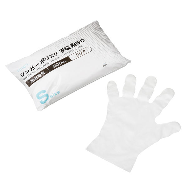 【アウトレット】シンガーポリエチ指絞り手袋 クリア袋 200枚 S LPE0140SE-TPS 宇都宮製作 【終売品】