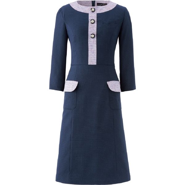 | 商品の特徴 | クチュール感のある上質なツイードを主役に、ノーブルなネイビーを合わせたドラマチックなワンピース。 | ||