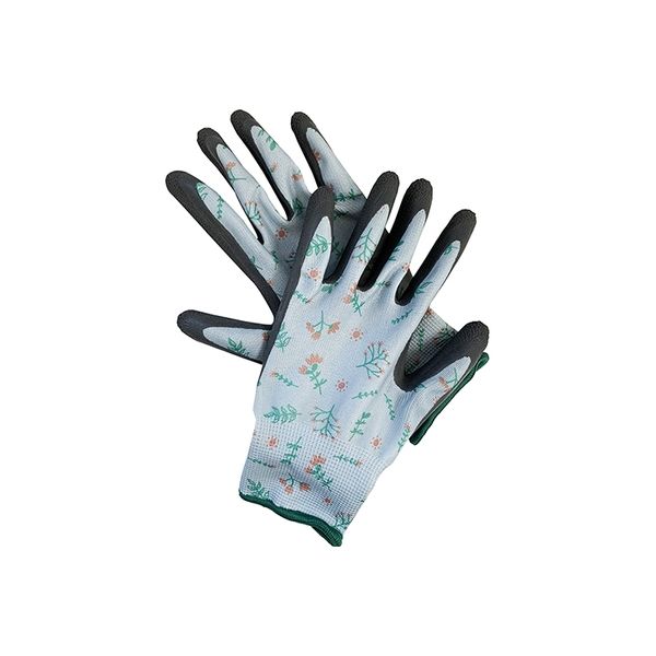 商品の特徴 かわいい小花柄のグローブの手のひらと指先に、天然ゴムですべり止め加工を施しました。手にぴったりフィットする編み加工+すべり止めでガーデニングだけではなく、荷物運搬などの軽作業にもご使用いただけます。