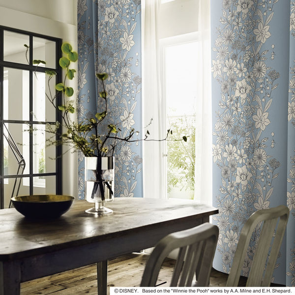 スミノエ DISNEY セミオーダー カーテン プー パルテール 1500×1850mm ライトブルー 1セット(2枚入)(直送品)