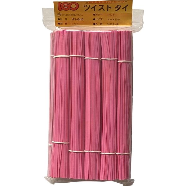 アイ・ジー・オー IGOツイストタイ ビニール・タイ ピンク 4mm×15cm VPI-0415 1袋(1000本入)