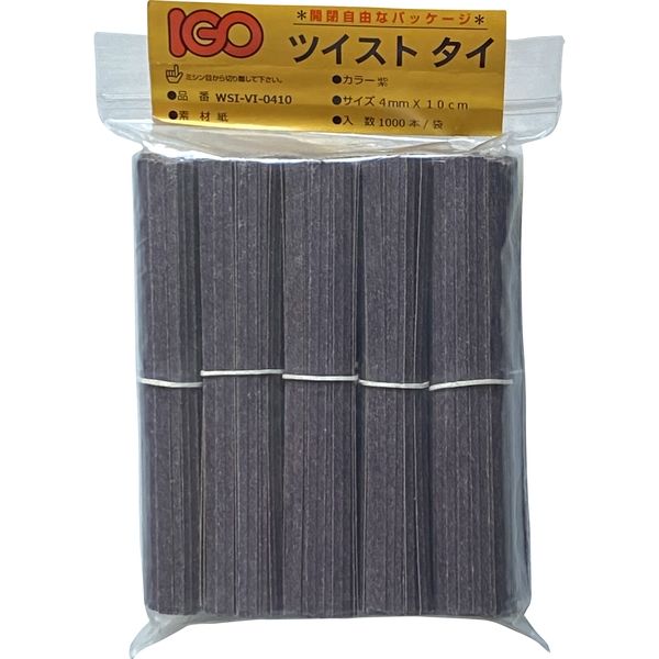 アイ・ジー・オー IGOツイストタイ 紙・タイ 紫 4mm×10cm WSI-VI-0410 1袋(1000本入り)(直送品)