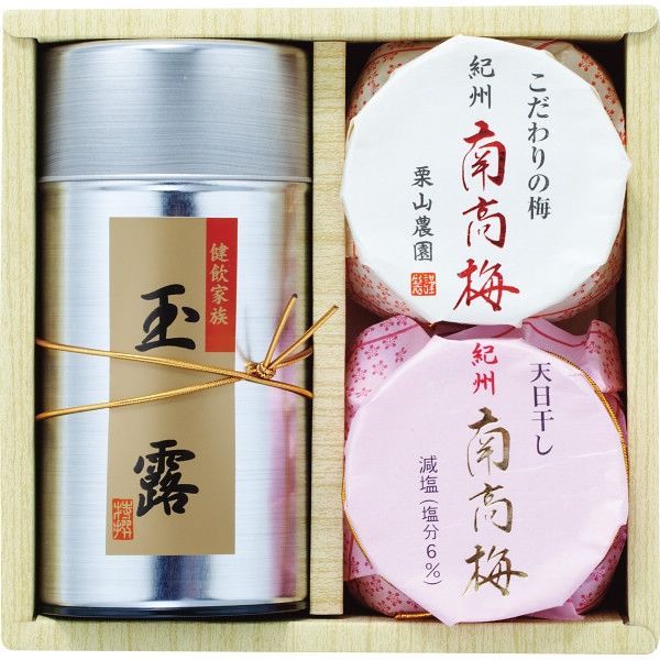 | 内容量 | 玉露100g、こだわり梅100g、天日干し100g | 賞味期限 | 常温360日 |