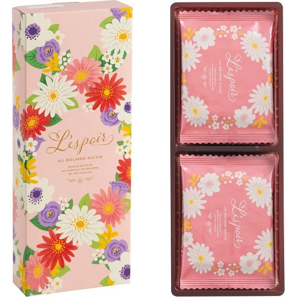 | 商品の特徴 | レスポワールのほろっとした「口どけ」をつくりだすのは、バターの中でも稀少な「カルピス(株)バター」と、薄焼きクッキーに合うよう配合した小麦粉。コクがあるのに軽やか。ほろほろとお口の中で溶けるから、おしゃべりも軽やかに。 | ||