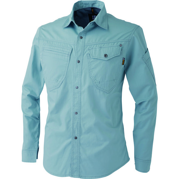 商品の特徴 通気性・吸水性に優れた高品質綿100%の生地をワンウォッシュし、さらに肌触り・風合いのよい仕上げをしたシリーズ。上着の背面タック、パンツの膝ダーツにより動きやすさを向上。多くのポケットをつくり高い収納力を備えた。ファスナー・ボタン・リベットはすべてYKKを採用。ファスナーを保護するため、エレメント部分が隠せる仕様。フロントファスナーに差し色を加え、風合いのある各カラーを引き立て、新しいスタイルを印象付けた。男女ユニセックス仕様。ワークウェア(シャツ)。綿100%・耐熱・通気性・頑丈・吸汗・ユニセックス
