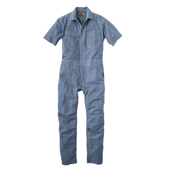 本商品:エスケー・プロダクト GE-585綿麻ストライプ半袖ツナギ ヒッコリー S 585-19-S 1着(直送品)