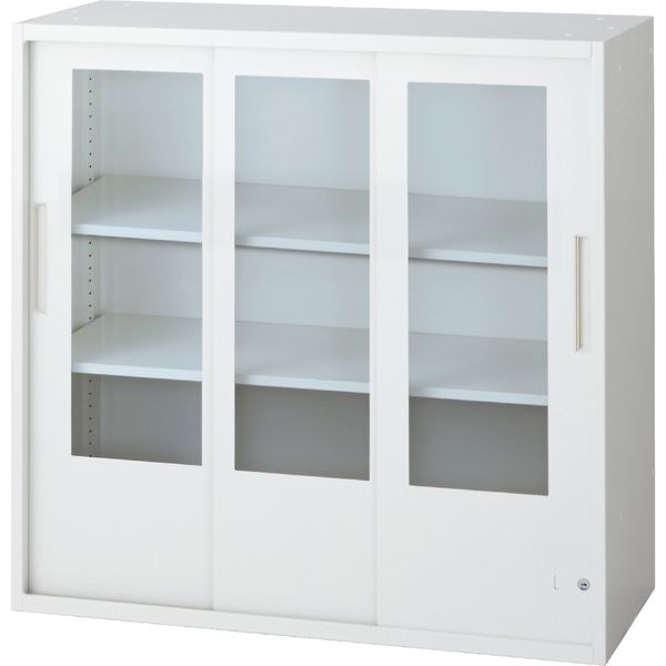 【組立設置込】プラス L6 引違い保管庫 3段 上置き用 鍵付 幅900×奥行400×高さ890mm ホワイト(直送品)