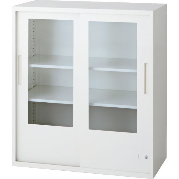 本商品:【組立設置込】プラス L6 2枚ガラス引違い保管庫 3段 上置き用 鍵付 幅800×奥行400×高さ890mm ホワイト(直送品)