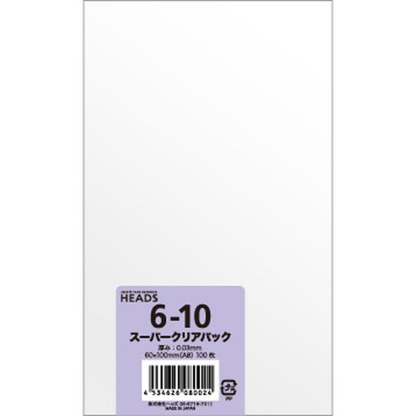 【OPP袋シールなし】 ヘッズ OPP袋60mm×100mm(A8サイズ) 0 1パック(100枚)