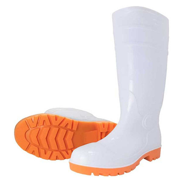 つま先保護用の鉄芯が入った耐油長靴。耐久性のある完全耐油性能でPVCインジェクション一体成型製。
