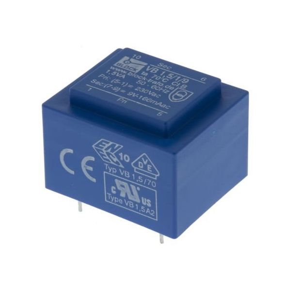 BLOCK 基板実装用トランス 一次側:230V ac 二次側:9V 定格電力:1.5VA, VB 1,5/1/9 出力数:1 1個(直送品)