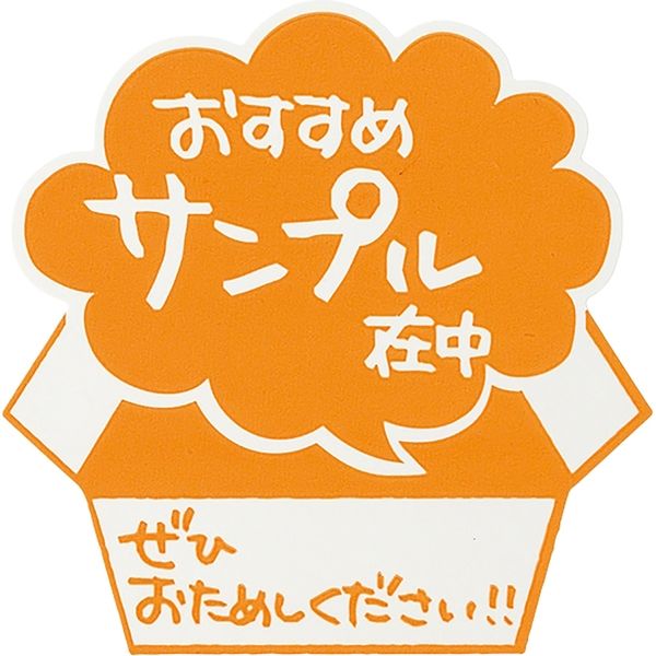 | 商品の特徴 | サンプルや試供品、おまけなどに貼る販促シールです。「おすすめサンプル在中」の手書き文字の入ったオレンジの吹き出し型で、しっかり目立ってアピールしつつも、どこか温かみを感じさせてくれるシールです。大きめサイズなので新商品やおすすめ商品のサンプル送付の外箱の貼付にもおすすめです。ネットショップ様や店舗様の販促にお使いください! | ||