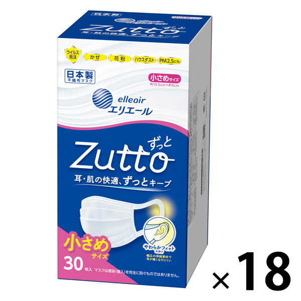 大王製紙 エリエール ハイパーブロックマスク Zutto 小さめサイズ 1セット(30枚入×18箱) 日本製