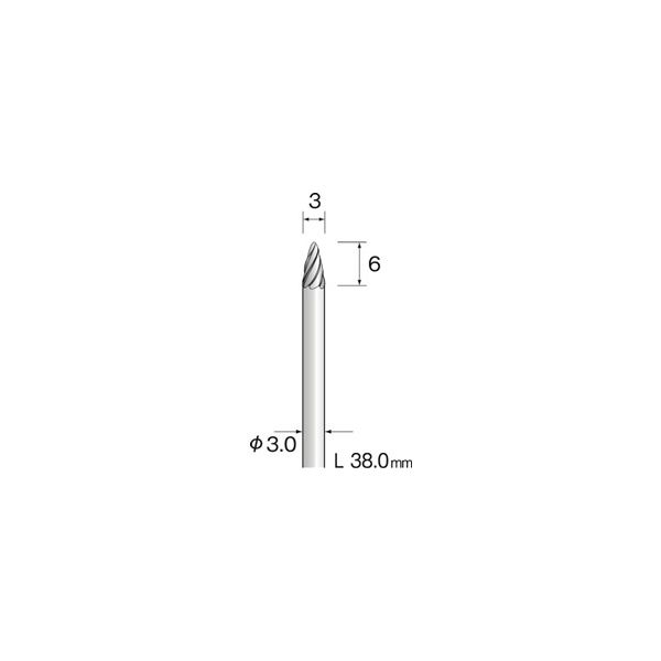 商品の特徴 ●回転数:50000rpm●形状:円錐先尖●軸径:3φ●刃径:3mm●刃長:6mm●全長:38mm●工具鋼、合金鋼、一般鋼、ステンレス、アルミニウム、銅 ●重切削から精密切削まで目的に合わせ豊富なサイズやカット形状があります。 ●切削性、耐摩耗性、耐久性に優れています。