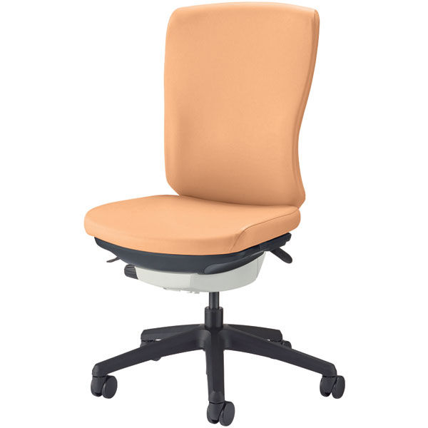 カラー ソフトオレンジ 材質 脚ベース/ブラック、上張/ビニールレザー張り(防汚)、クッション/背座モールドウレタン、背座カバー/PP樹脂成型品、脚部/PA樹脂成型品