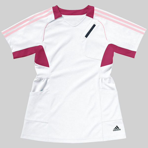 adidas レディスチュニック丈スクラブ ホワイト+ピンク M SMS001-14 1枚 スクラブ(直送品)