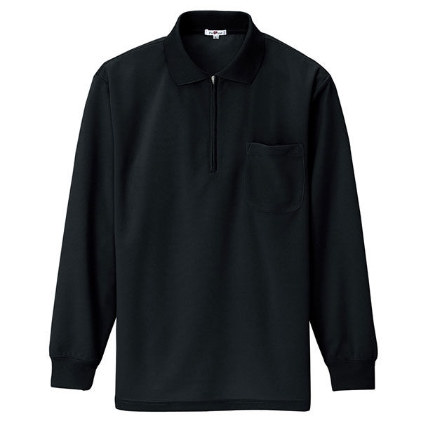 アイトス 吸汗速乾(クールコンフォート)長袖ジップポロシャツ(男女兼用) ブラック S AZ10580-010 1着(直送品) 145-0512(直送品)
