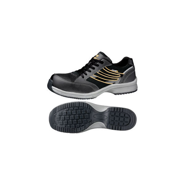 | 色 | ブラック、 JIS T8103 一般静電保護靴に準拠 | 規格 | JSAA認定 A種人工皮革製プロスニーカー/踵衝撃吸収/耐滑/静電 |