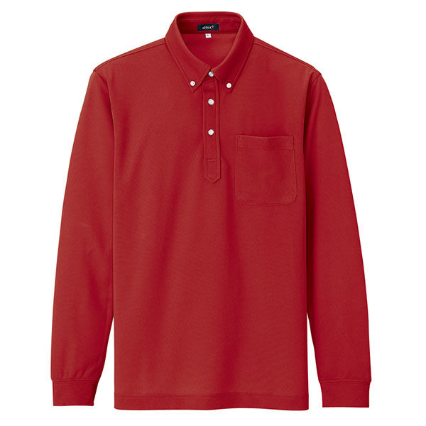 アイトス 吸汗速乾(クールコンフォート)長袖ボタンダウンポロシャツ(男女兼用) レッド 4L AZ10598-009 1着(直送品)