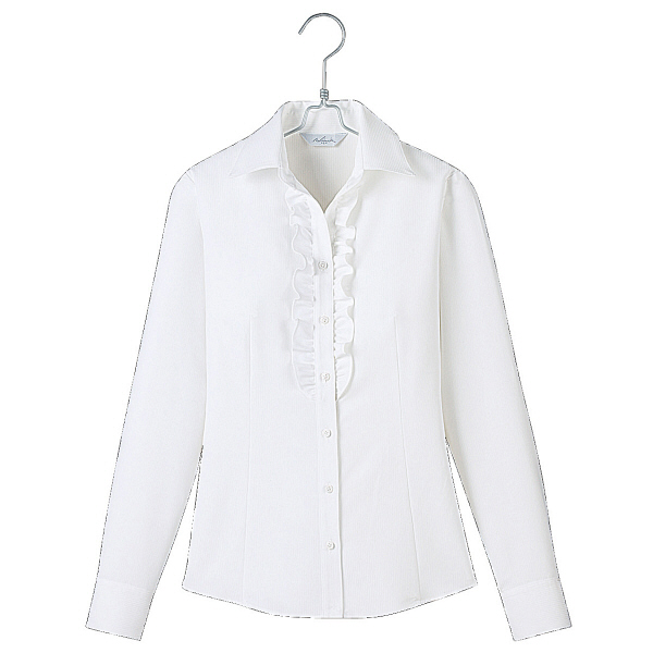 nuovo(ヌーヴォ) 事務服 長袖ブラウス ホワイト 11号 フォーク SB7502 1着