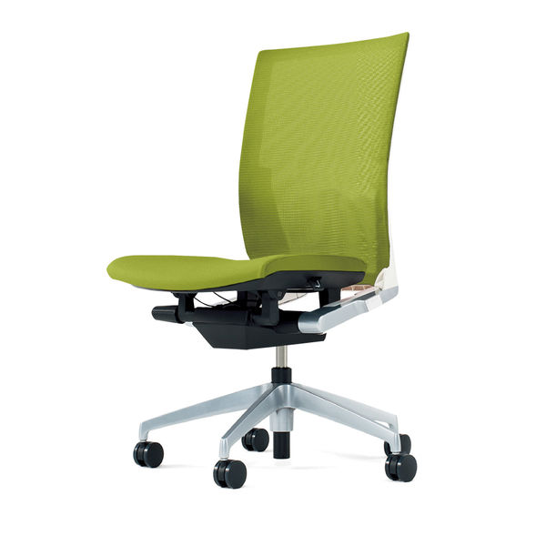 - 背/メッシュ張り、座/布地張り、背フレーム/強化ナイロン樹脂、背ブラケット・脚/アルミダイキャスト粉体塗装、ナイロン双輪キャスター付