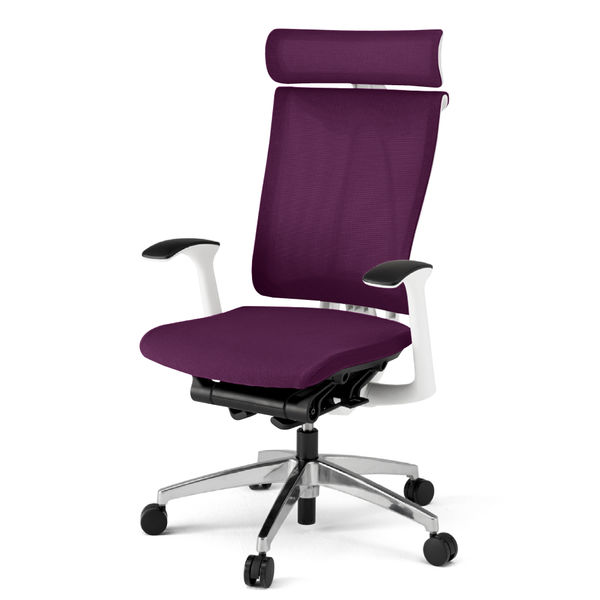 設置込】イトーキセレーオチェアメッシュタイプ モール付フレーム EXハイバック 固定肘 ハンガー無 ホワイトフレーム アルミミラー脚プラムパープル(直送品)