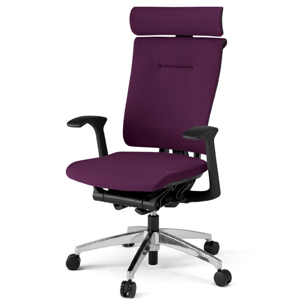 設置込】イトーキセレーオチェアクロスタイプ モール付フレーム EXハイバック 固定肘ハンガー付 ブラックフレーム アルミミラー脚背座プラムパープル(直送品)