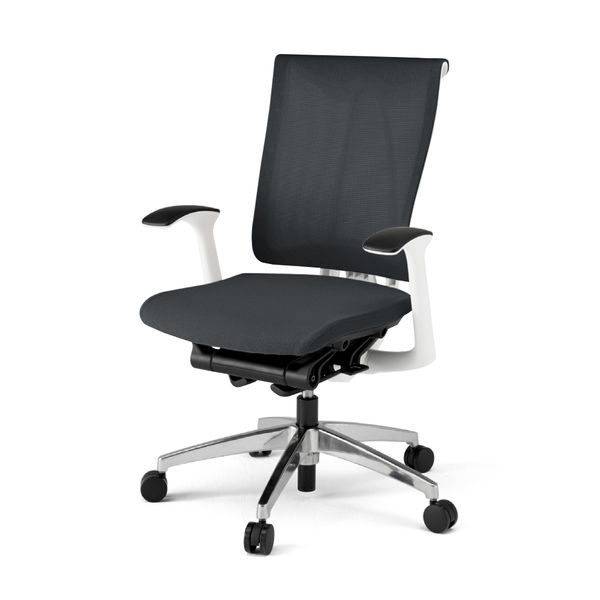 【設置込】イトーキ セレーオチェア メッシュタイプ 固定肘付 ハンガー付 ホワイトフレーム アルミミラー脚 背座オフブラック 1脚(直送品)