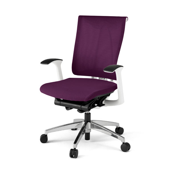【設置込】イトーキ セレーオチェア メッシュタイプ 固定肘付 ハンガー付 ホワイトフレーム アルミミラー脚 背座プラムパープル 1脚(直送品)