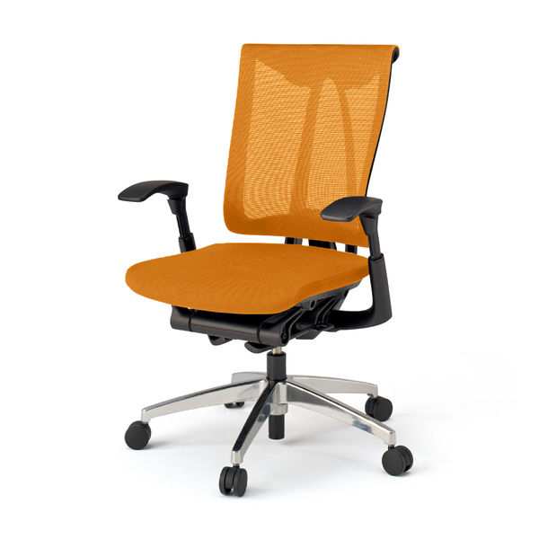 【設置込】イトーキ セレーオチェア メッシュタイプ 可動肘付 ハンガーなし ブラックフレーム アルミミラー脚 背座アンバーオレンジ 1脚(直送品)