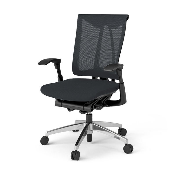 【設置込】イトーキ セレーオチェア メッシュタイプ 可動肘付 ハンガーなし ブラックフレーム アルミミラー脚 背座オフブラック 1脚(直送品)