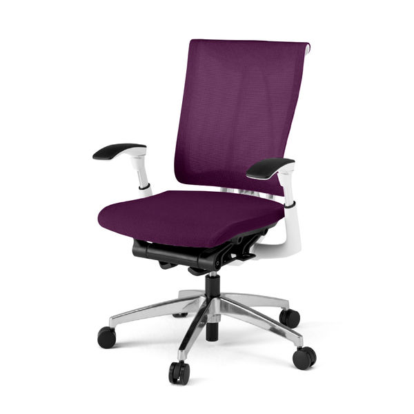 【設置込】イトーキ セレーオチェア メッシュタイプ 可動肘付 ハンガーなし ホワイトフレーム アルミミラー脚 背座プラムパープル 1脚(直送品)