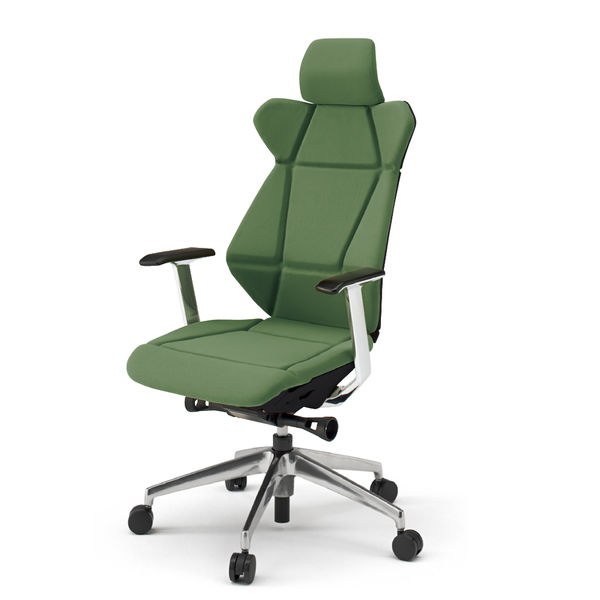 【設置込】イトーキ フリップフラップチェア エクストラハイバック 固定肘付 ハンガー付 ブラックシェル アルミミラー脚 背座アイビーグリーン 1脚(直送品)