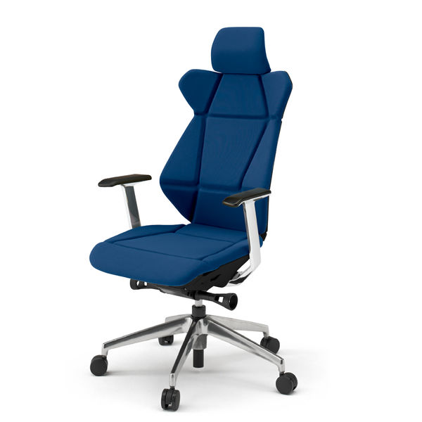 【設置込】イトーキ フリップフラップチェア エクストラハイバック 固定肘付 ハンガーなし ブラックシェル アルミミラー脚 背座ネイビーブルー 1脚(直送品)
