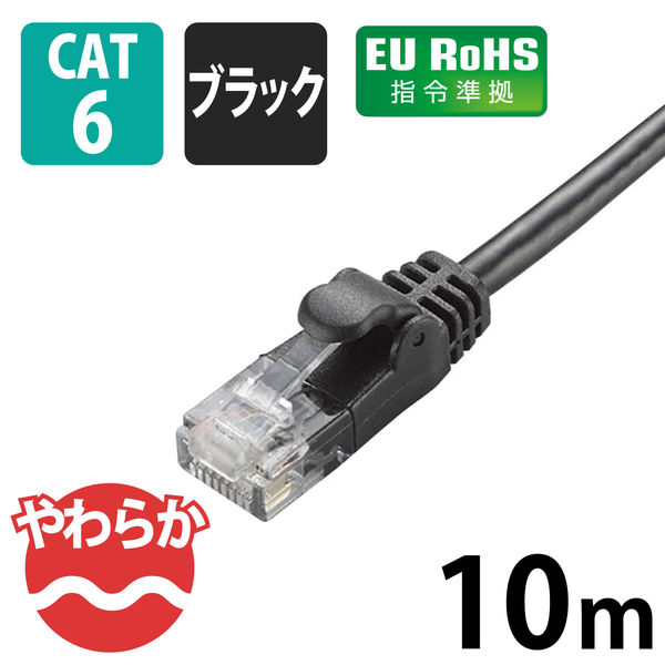 エレコム やわらかLANケーブル CAT6 10m ブラック LD-GPY/BK10 1個