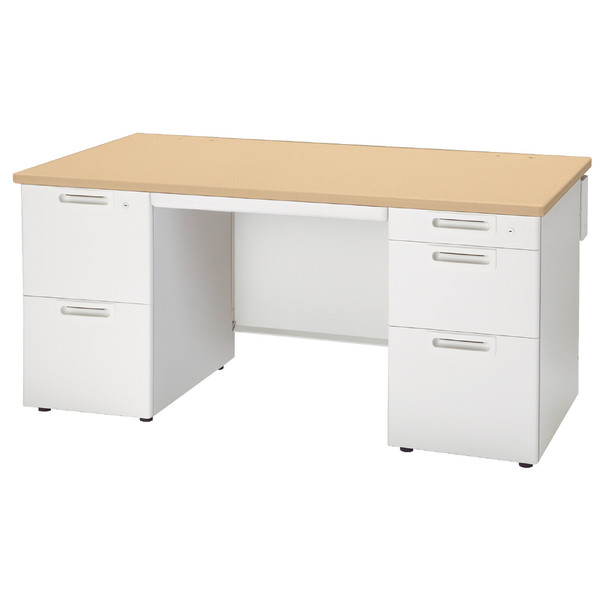 材質 天板:メラミン樹脂化粧板、ポストフォーム加工、本体:鋼板、焼付塗装、幕板:鋼板、焼付塗装 商品区分 両袖机