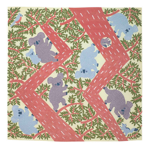 | 商品の特徴 | コアラの親子が可愛らしい大判の風呂敷です。 バッグやタペストリー、テーブルクロスとしてもご利用いただけます。 お子さまを寝かせて寝相アートとして楽しんだり、結んでお子様のリュックとして使ったり、子供部屋のインテリアにもピッタリです。 綿100%で優しい肌触りです。 | ||