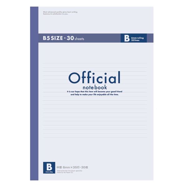 | 商品の特徴 | ●セミB5●30枚●B罫●無線綴じ | ||