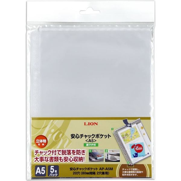 ライオン事務器 安心チャックポケット A5 AP-A5M 14788 1セット(5枚入)