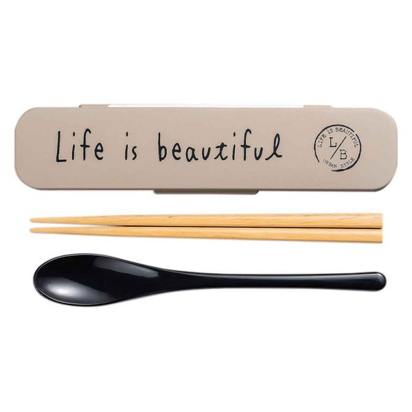 正和 コンビセット 箸 スプーン 18cm LIFE IS BEAUTIFUL スタンプ グレー 392486 1個(直送品)